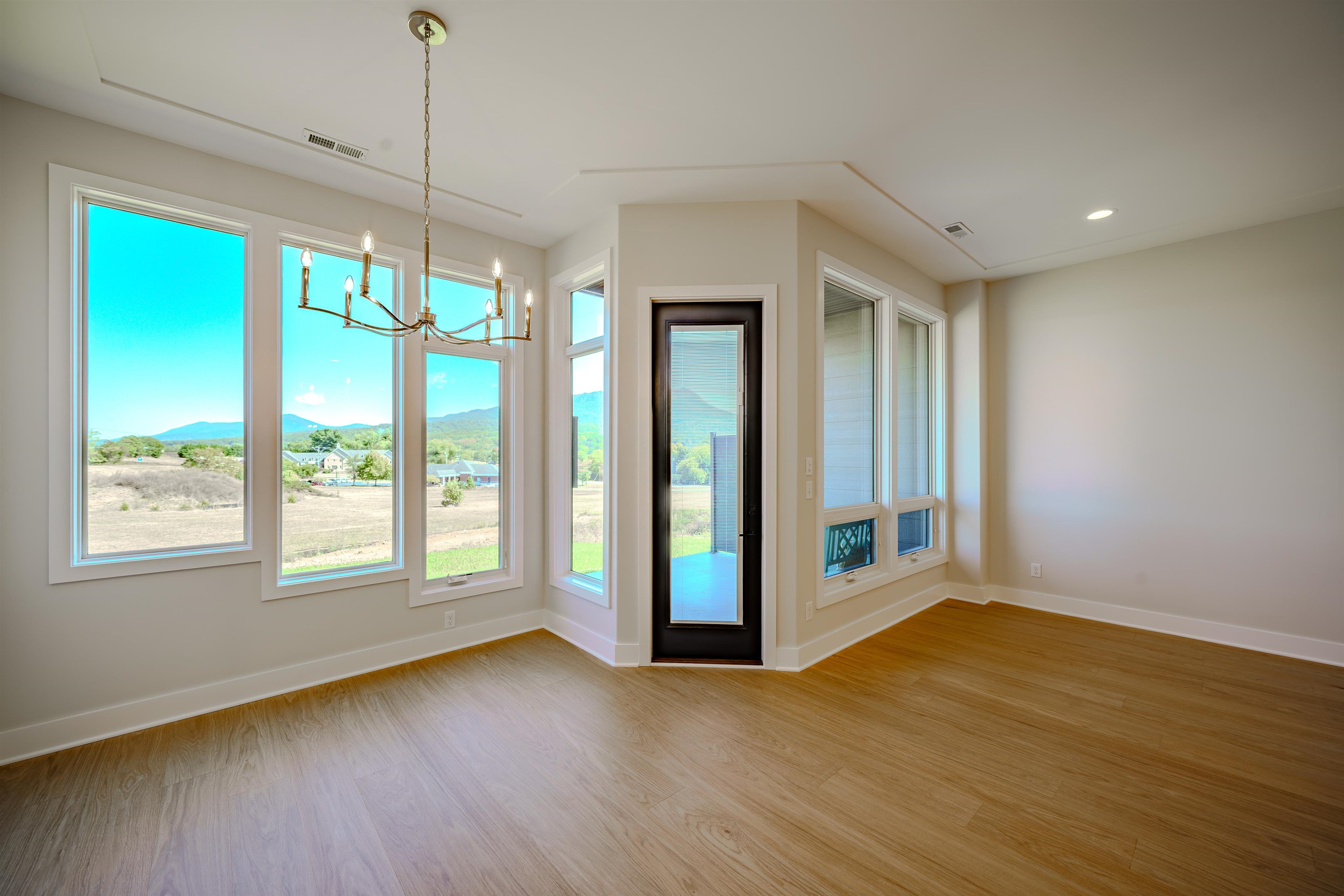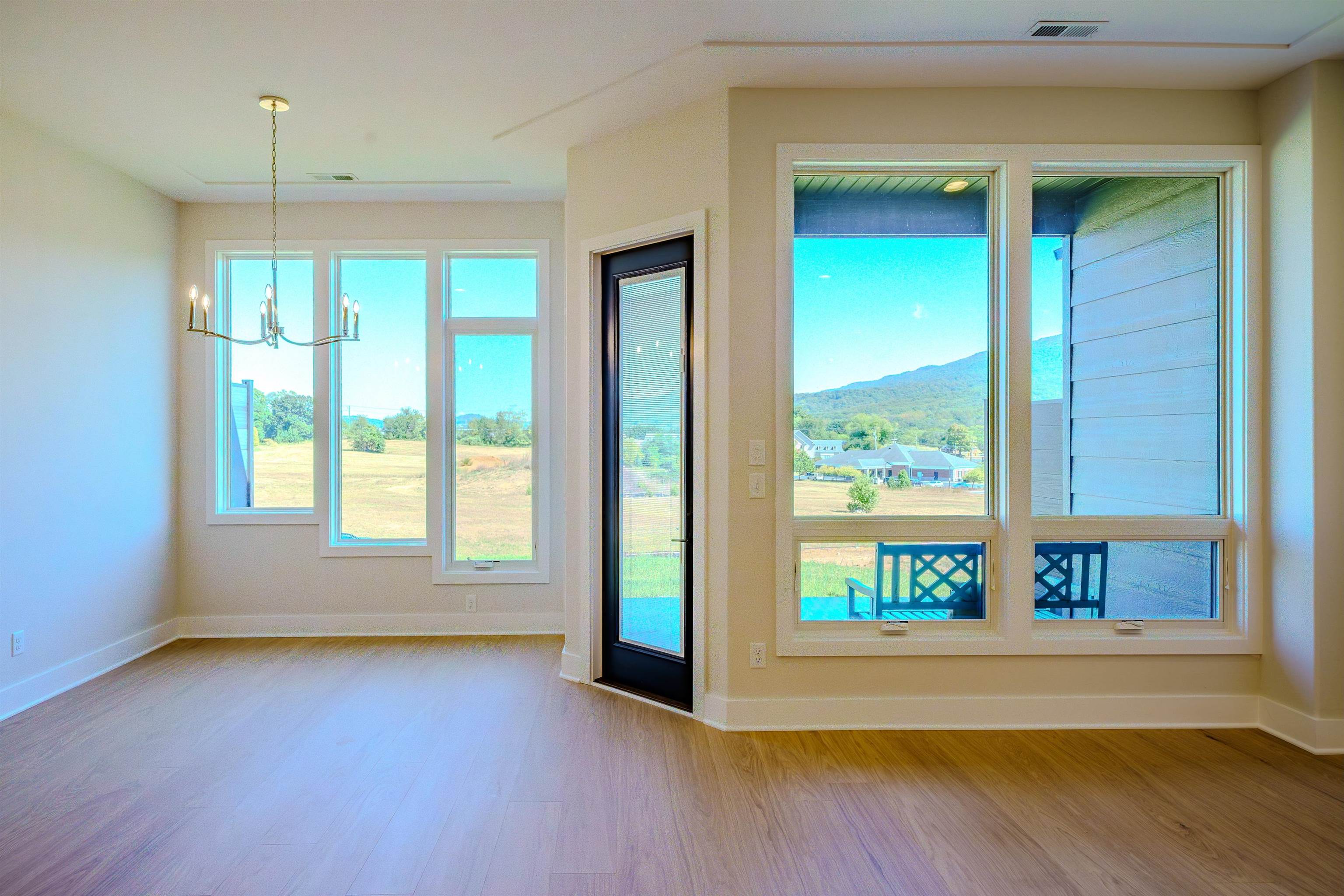 Experience refined living in this new luxury townhome by Simensen Construction, located in the sought-after Crossroads Farm golf course community. Perfectly positioned to capture unobstructed views of Massanutten Mountain in the heart of the Shenandoah Valley, this home combines modern design with timeless craftsmanship. Inside, you’ll find 1,910 sq. ft. of thoughtfully designed space featuring 10’ ceilings on the main level and 9’ upstairs, creating an airy, open feel. The floor plan flows seamlessly, anchored by large Marvin windows that flood the home with natural light and frame the breathtaking scenery. This 3-bedroom, 2.5-bath home includes a spacious primary suite with a walk-in closet and a spa-like tiled shower. The kitchen is a chef’s delight, showcasing quartz countertops, upgraded appliances, and elegant finishes. Step outside to a private patio—perfect for morning coffee or evening relaxation. Additional highlights include a single-car garage with an extra parking space and cutting-edge construction with state-of-the-art green materials like “Newteck” and Smart board siding. Located across from Peale’s Park, less than a mile from Rockingham Park at the Crossroads, and just minutes from downtown Harrisonburg and JMU